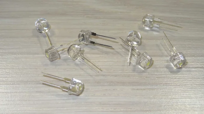 Набор белых светодиодов. Стоит около 38 рублей. Ссылка