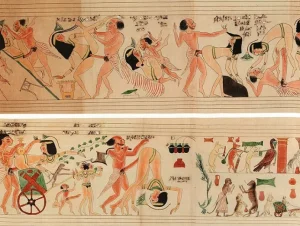 Оглядываясь на середину II тыс. до н. э., увековеченные на Туринском папирусе сцены секса выглядят как древнейший эротический журнал. Это первый в истории пример сочетания визуальной и текстовой эротики.