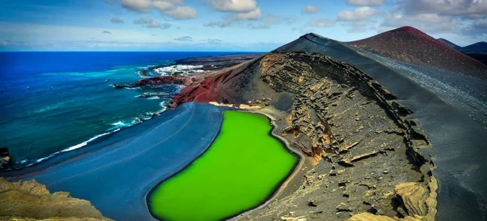 На острове Лансароте есть водоём, который выглядит так, будто его подсветили неоновой лампой. Его ядовито-зелёный цвет - результат смеси серы и водорослей. Пейзаж настолько футуристичный, что здесь снимали кино (Педро Альмодовар и "Миллион лет до нашей эры"), а NASA тренирует космонавтов.