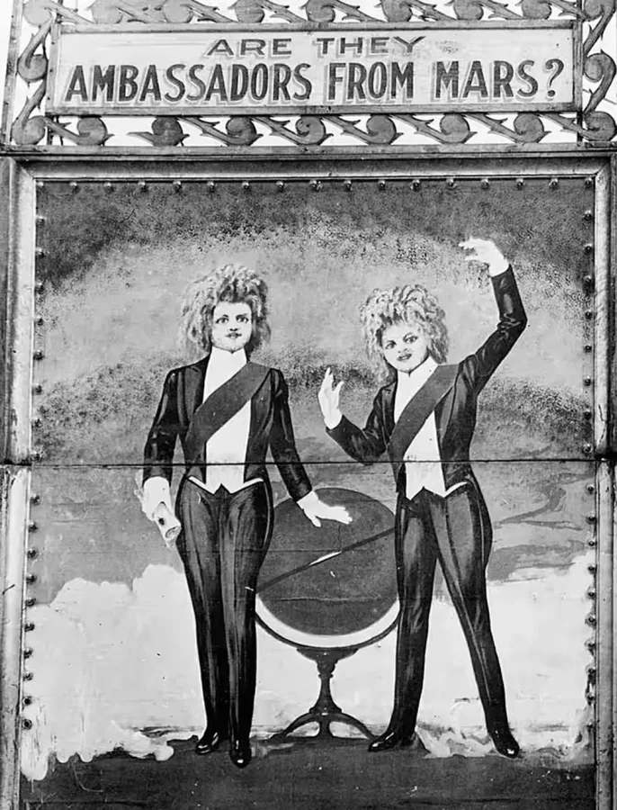 В цирке братьев переименовали в Эко и Ико, чтобы усилить их экзотический образ. Их рекламировали под разными вымышленными историями: то как «овцеголовых людей» с островов Южных морей, то как «белых эквадорских каннибалов», а в 1927 году — как «Посланцев с Марса», якобы найденных в пустыне Мохаве после крушения космического корабля. Эти фантастические сюжеты, придуманные шоуменами, привлекали толпы зрителей, жаждущих увидеть нечто необычное.