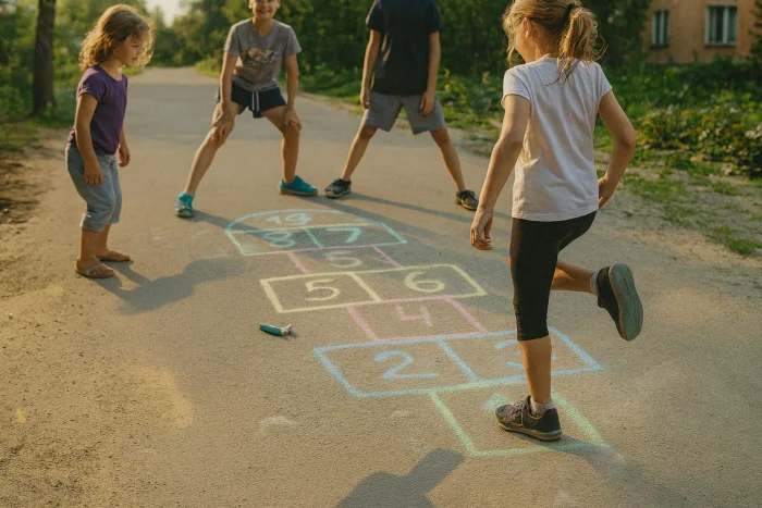 Несколько нарисованных мелом квадратов и камешек — и всё, ты уже в игре. Прыжки по клеткам на одной ноге казались лёгкими, но в реальности требовали ловкости и баланса. Девочки часто украшали поле цветными узорами, а мальчишки — сокращали правила «для скорости».