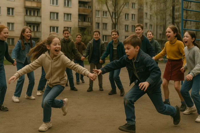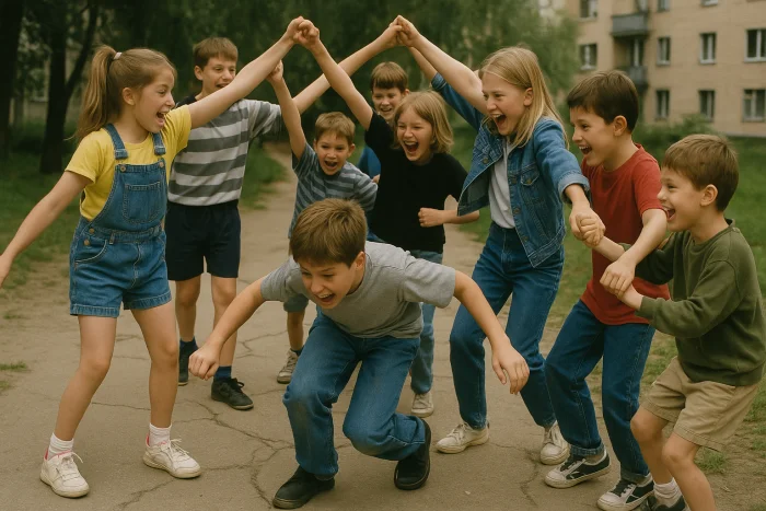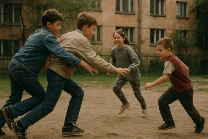 Во дворе всегда кипела жизнь: гулкие удары мяча о стену, звонкий смех, споры о правилах и крики «Я не водю!». Лето пахло мелом, пылью и свежескошенной травой, а асфальт был разрисован клетками «классиков» и следами от кроссовок. Мы собирались большими компаниями, делились секретами, соревновались в ловкости и всегда находили игру по душе. Эти дворовые забавы не требовали ни дорогих гаджетов, ни сложных правил — только немного фантазии и хорошая компания.