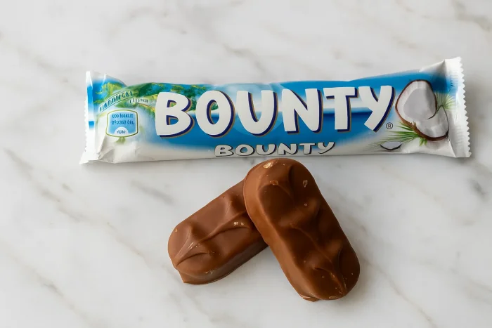 Баунти отличался от других батончиков тем, что делал ставку не на сытность, а на удовольствие. Кокосовая стружка, утопающая в молочном или тёмном шоколаде, напоминала о далеких островах. Реклама с пальмами и бирюзовым морем выглядела как окно в экзотику, недоступную большинству.