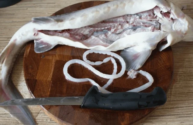 Стерлядь - рыба, которая хорошо известна гурманам и любителям рыбных блюд. Однажды, один рыбак, который пригласил своих родственников на ужин, приготовленный из стерлядки, вытащил из живота рыбы визигу и съел ее, заявив, что в стерляди всегда только один червь, и что другие могут спокойно есть рыбу без опасения.