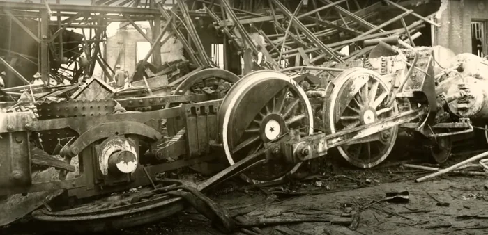 Один из фрагментов локомотива пролетел 1,4 километра, врезался в дом миссис Гиллис и разрушил его, похоронив женщину под обломками.