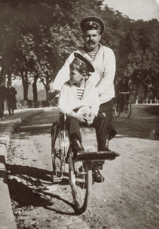 В погожие дни Деревенько возил наследника на велосипеде со специальным седлом на руле по Царскосельскому парку.