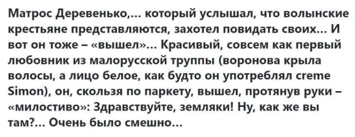Для крестьян холеный Деревенько был чужаком, который ничем практически не отличался от других "их благородий".