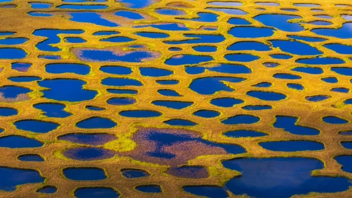 Это поистине уникальное место. Подобно тому, как странник в конце своего пути оставляет посох, Лена расстается с единым руслом и растекается по тундре бесчисленными серебристыми протоками. Они то расходятся в разные стороны, то вновь соединяются, создавая причудливый узор из воды и земли площадью 45 тысяч квадратных километров — почти как вся территория Московской области.