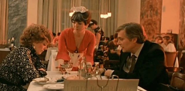 Именно из-за такого обеда поссорились герои фильма "Вокзал для двоих". Всего за рубль-двадцать можно было получить закуску, горячее, десерт и бесплатный напиток - по нынешним меркам невероятно дешево.