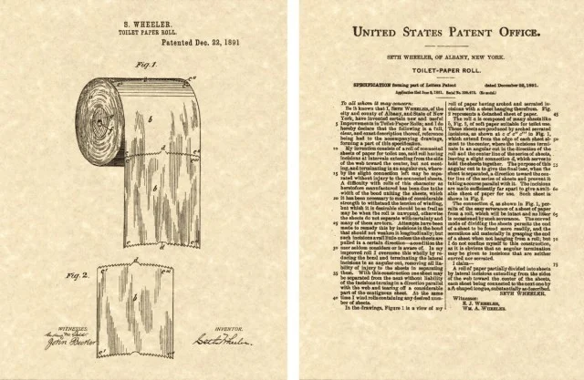 На фото: Патент на туалетную бумагу в рулонах с отрывной линией, датированный 1891 годом.
