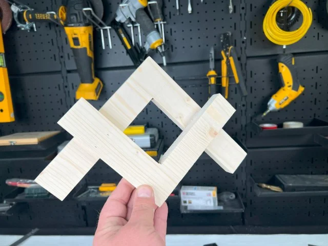 Итак, начнём. Возьмём деревянный квадрат — у меня, например, это размером 200 на 200 мм.