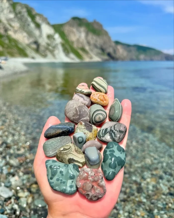 Камни уникальны: местные уверяют, что два одинаковых не найдёшь — идеальный повод зависнуть на пляже подольше.