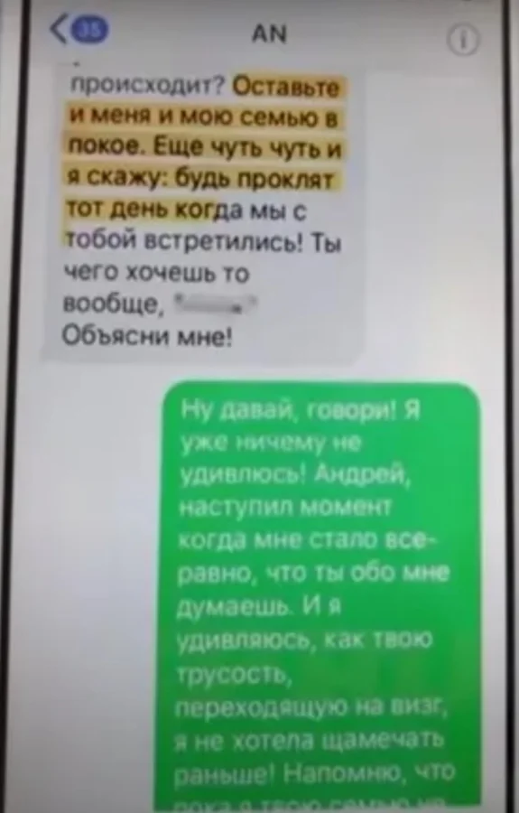 - Я сейчас не помню, о чём она писала, это бред был какой-то. Но меня это возмутило... Я сказала мужу, он свёл все к работе, сказал, что это касается рабочих моментов... Я поверила... = рассказывала Юлия в суде.