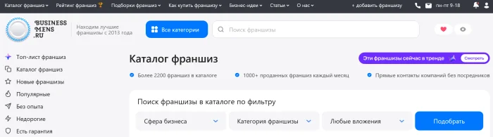 Если вы как раз на стадии выбора, загляните на Бизнесменс.ру — это каталог франшиз с широким выбором форматов для России и стран СНГ. Здесь удобно сравнивать инвестиции, паушальные взносы и роялти, изучать условия запуска, кейсы действующих партнёров и получать консультацию по подбору модели. Найдете готовые франшиза под ключ под ваш бюджет и город — от первой встречи до открытия точки вас проведут по шагам.