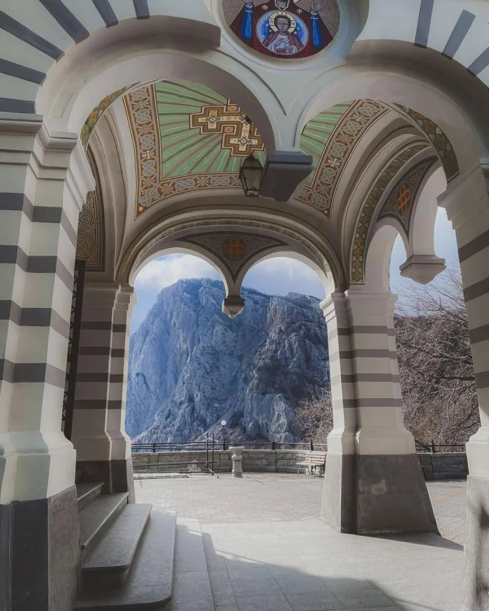 🚗 Добраться сюда реально: от посёлка Форос по извилистой дороге минут десять, и вы на вершине. Дорога узкая, но пейзажи впечатляют: с одной стороны — скала, с другой — бескрайнее Чёрное море. На высоте около 400 м над уровнем моря здание будто возвышается над горизонтом.