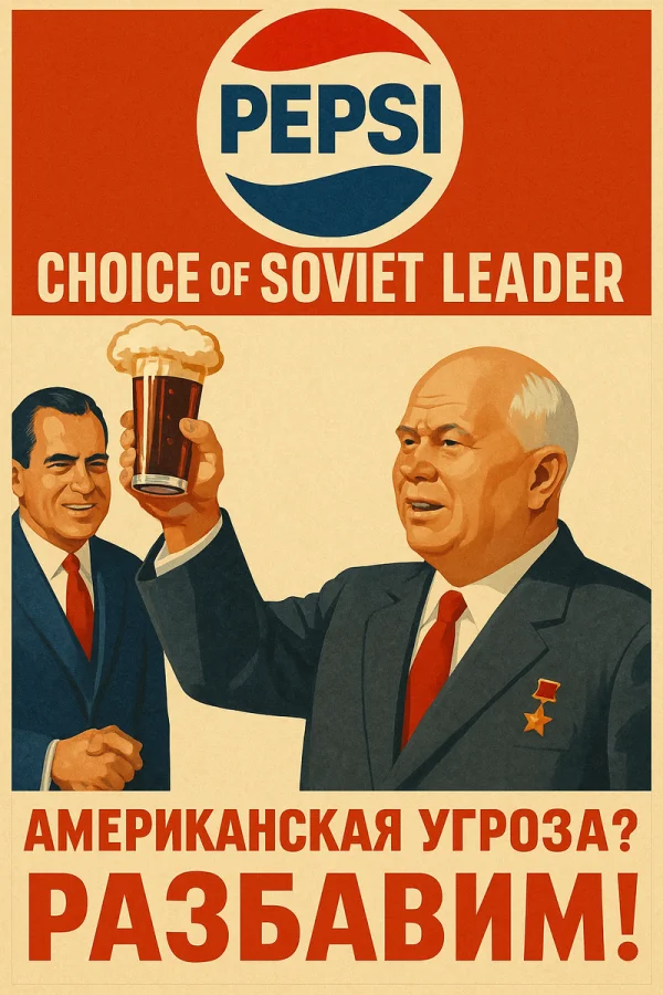 1959 год, выставка в Москве. К павильону с американскими товарами подходит вице-президент США Никсон. За ним — Хрущёв. Они спорят о холодильниках, стиральных машинах и идеологии, пока Никсон не предлагает: «Давайте лучше выпьем Pepsi».