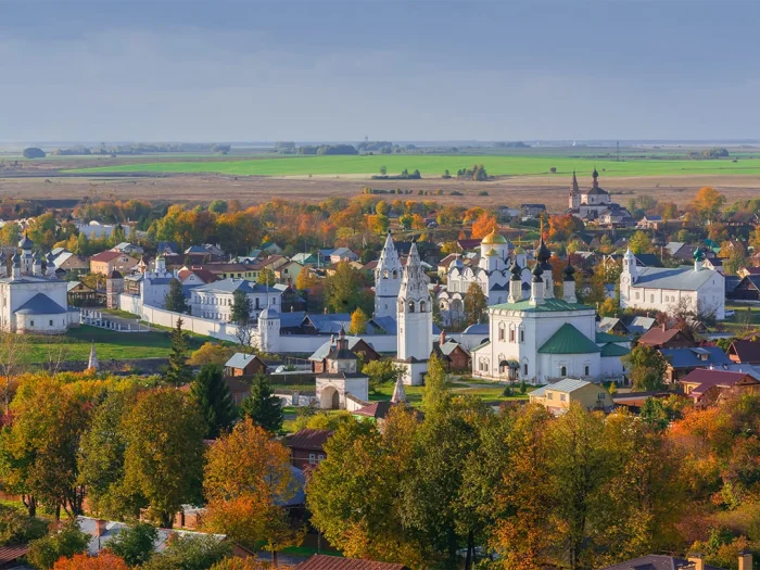 Суздаль часто называют музеем под открытым небом. Здесь Кремль, монастыри и старинные дома органично соседствуют с ухоженными огородами и деревянными избами, а невысокие современные здания не закрывают вид на историческое наследие. Достопримечательностей здесь немало: Суздальский кремль с земляными валами, Рождественским собором XIII века и архиерейскими палатами XV–XVII веков.