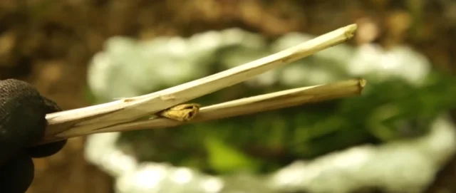 3. Во время выживания в лесу руки могут стать очень грязными, поэтому можно сделать палочки для еды. Просто возьмите палку, разрежьте её на две части, но не до конца, а в получившийся проём вставьте щепку. Теперь вы можете просто опустить края палочки в кипящую воду и избавиться от бактерий.