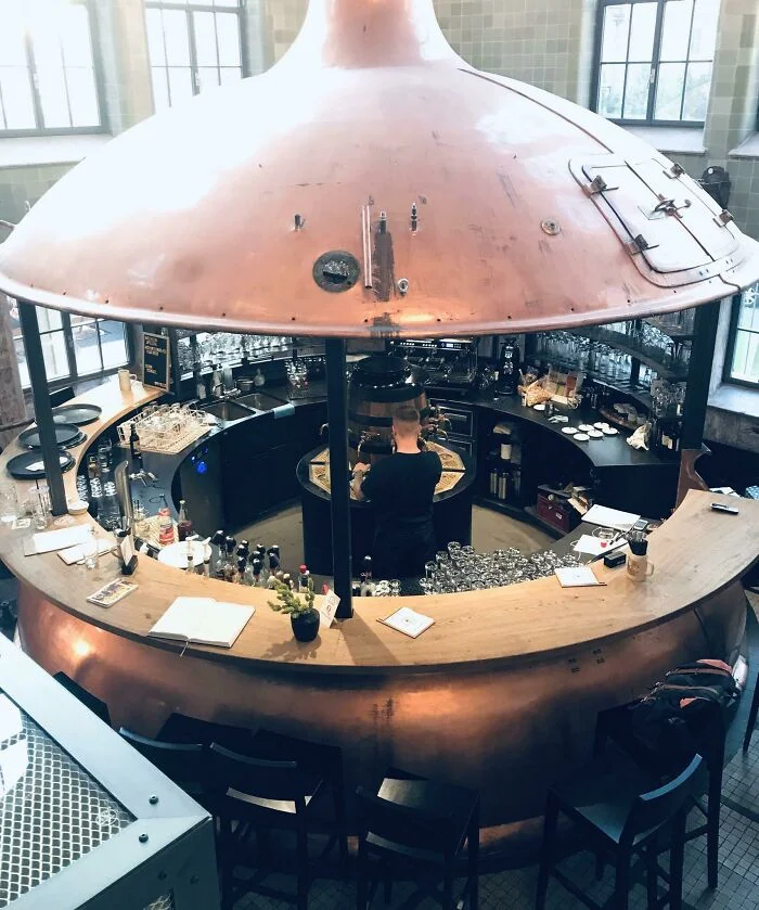 8. Барная зона, расположенная внутри старинного варочного котла. Бельгия.