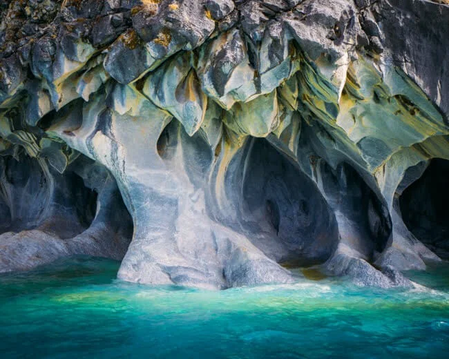 Мраморные пещеры, высеченные в недрах Патагонских Анд, расположены на полуострове из цельного мрамора, омываемом водами озера Хенераль-Каррера. Это удаленное ледниковое озеро Чили делит пополам с Аргентиной.
