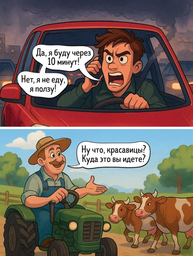 Где бы мы ни находились — в ритме шумного мегаполиса или в уюте родной провинции, — жизнь по ту сторону всегда вызывает неподдельное любопытство. Кто-то мечтает о тишине и покое, а кто-то, наоборот, об экстренном билете на ближайшую вечеринку. Эти комиксы — отличный повод для дружеских дебатов, сопровождающихся восклицаниями вроде «Это точно про меня!» и «У нас точь-в-точь такая же ситуация!».