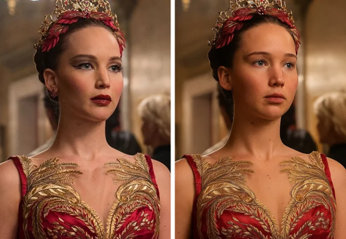 Нейросеть стерла макияж с киношных красоток
