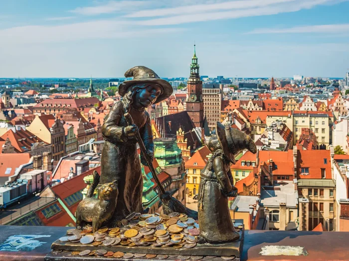 Тренд на создание серийных памятничков задал польский город Вроцлав с его «армией» гномов. Гномики, или краснолюдики, как их называют в Польше, — полноценные жители города: они снимают деньги в банкомате, просят милостыню, женятся, читают книги, играют в карты, стирают белье или просто спят. «Заселять» местность бронзовые малыши начали в 2001 году, а сегодня их насчитывается более трех сотен.