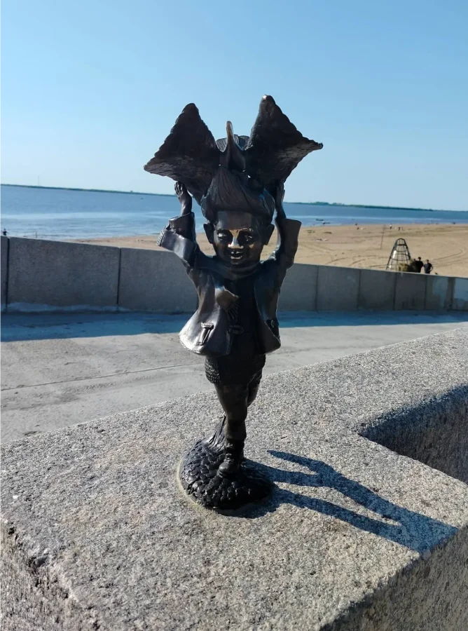Мини‑скульптуры кудесников на набережной Северной Двины — это серия из пяти придуманных сказочных персонажей, внешне похожих на детей. Каждый из них — хранитель одного из символов региона. Вот эти артефакты: