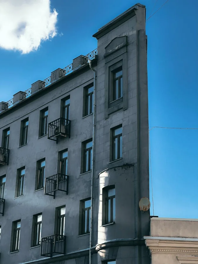 Так появился доходный дом в духе неоклассицизма. Снаружи — строгий фасад с фронтоном, а внутри — просторные квартиры с дубовыми полами, лепниной, высокими потолками и даже дымоходами под самовары. На пяти этажах разместилось всего 17 квартир — показатель того, насколько комфортное жильё проектировали тогдашние мастера.