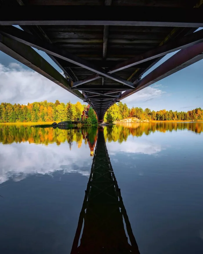 Сегодня путь по мосту — отдельное удовольствие. С него открывается панорама на плавные воды Вуоксы, сосновые леса и сам храм, который в солнечную погоду отражается в воде почти зеркально. Летом здесь особенно красиво: островок словно парит среди зелени, а зимой храм стоит, как игрушечный, среди морозных пейзажей.