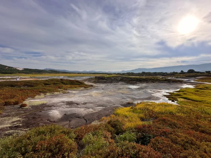 Поверхность здесь словно дышит: трещины расходятся под ногами, источники бурлят, газовые струи поднимаются к небу. Это одна из самых ярких зон гидротермальной активности на Камчатке, где можно буквально ощутить, как в недрах продолжает жить огненная стихия.