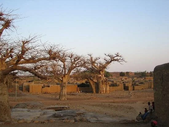 В центральной части Мали, на расстоянии примерно девяноста километров от населённого пункта Мопти, из песчаных просторов полупустыни возвышается впечатляющая скала из песка. Это место известно как утёс Бандиагара, представляющий собой уникальный природный объект, где высокогорное плато граничит с бескрайними равнинными ландшафтами.