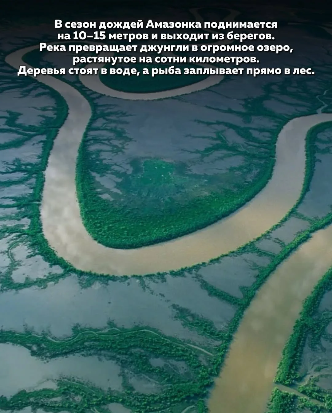 Во время сезонных разливов джунгли превращаются в огромное внутреннее море. Деревья стоят по ствол в воде, а рыба свободно заплывает прямо в лес. Существуют виды рыб, которые питаются плодами деревьев во время наводнений, а затем возвращаются обратно в русло, когда вода уходит.