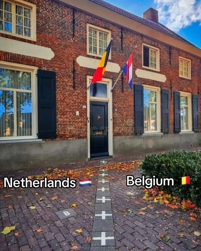 Совсем иначе выглядит граница между Нидерландами и Бельгией. В некоторых городах она проходит буквально через дома и дворы, а обозначена лишь линиями на мостовой и флагами. Жители по обе стороны границы живут практически одной жизнью, свободно перемещаясь между странами.