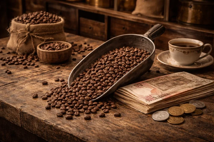 Кофе в зёрнах был уже тогда товаром не для всех. Цена около 2 рублей делала его дорогим удовольствием — в современных реалиях это примерно 4000 рублей. Кофе чаще пили в зажиточных домах и кофейнях.