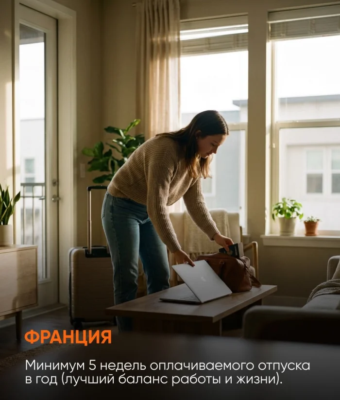 Франция по праву считается одной из лучших стран для тех, кто ценит личное время. Минимальный оплачиваемый отпуск составляет пять недель в год, и это не считая государственных праздников. Такой подход помогает людям сохранять здоровье, проводить больше времени с семьей и не выгорать на работе, что в итоге положительно влияет и на производительность труда.