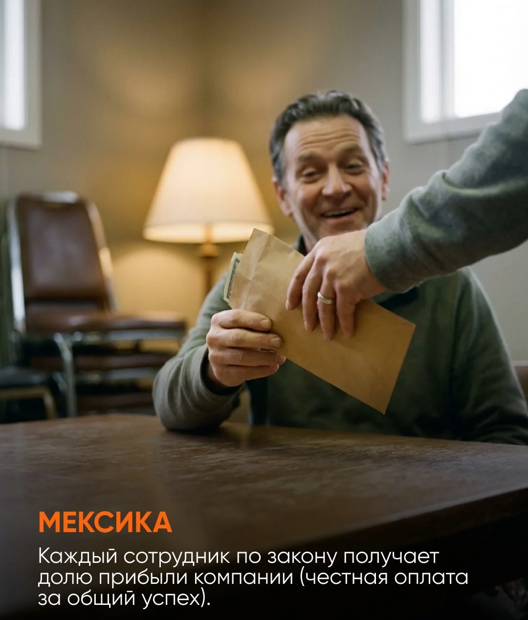 Мексика удивляет своим подходом к распределению прибыли. По закону работники имеют право на долю от доходов компании, в которой трудятся. Это не бонус и не добрая воля работодателя, а обязательная норма. Такой подход мотивирует сотрудников, снижает социальное неравенство и делает успех бизнеса общим достижением, а не привилегией узкого круга владельцев.