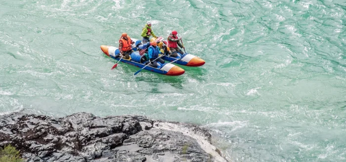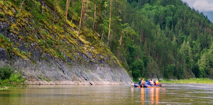 Для больших групп идеальным выбором станет надувной рафт, рассчитанный на 8–18 человек. Он отлично справляется с ударами о камни и бревна, но для длительных путешествий не слишком удобен, так как пассажирам приходится сидеть на бортах, что вызывает дискомфорт. Управление рафтом требует навыков, и в случае ошибки он может зачерпнуть воду или перевернуться. Именно поэтому такие плавсредства чаще используют на организованных турах под руководством опытного гида.