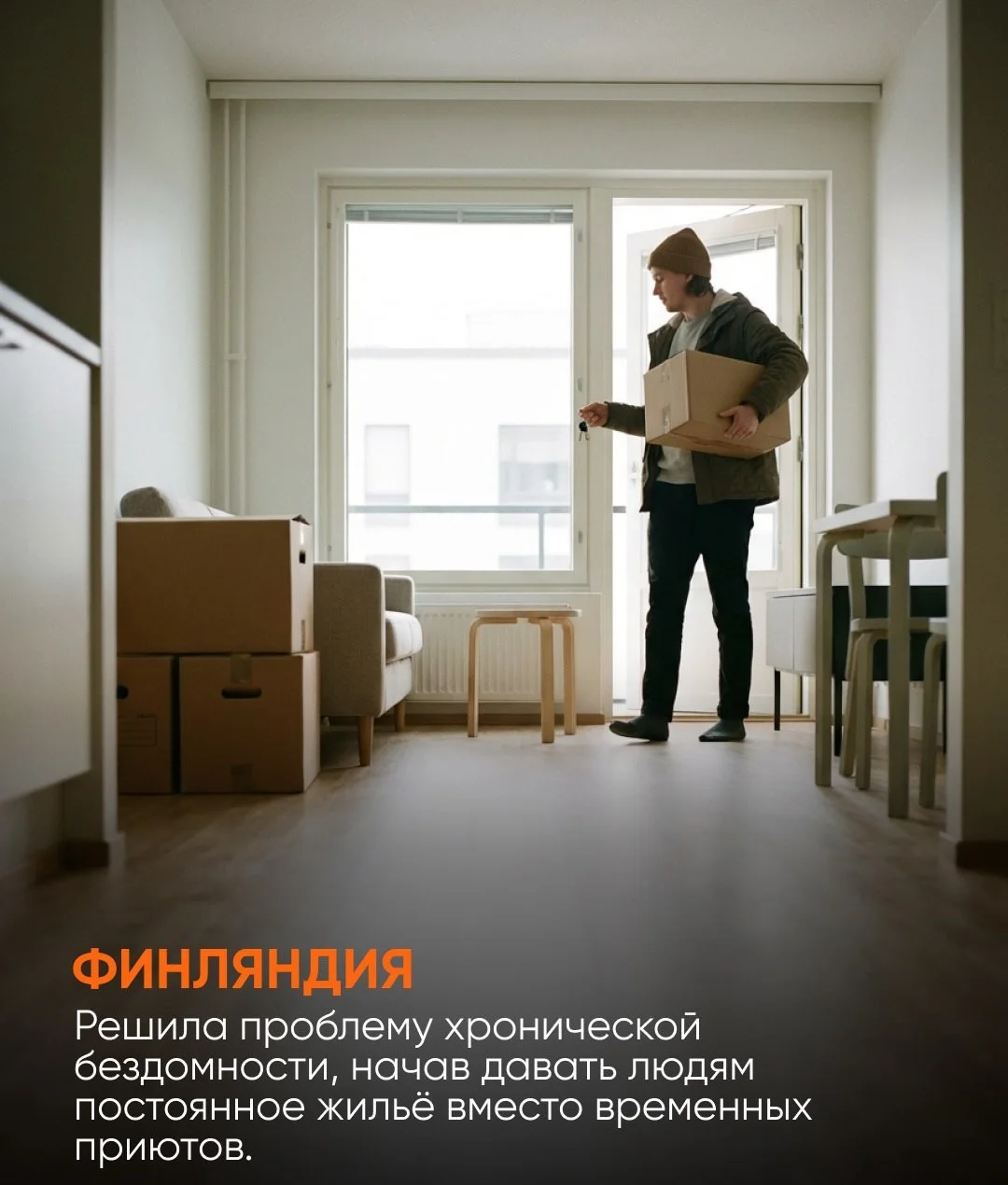 Финляндия выбрала радикально простой подход к проблеме бездомности — сначала дать человеку постоянное жильё, а уже потом решать остальные проблемы. Эта модель показала высокую эффективность: количество бездомных значительно сократилось, а расходы государства в долгосрочной перспективе уменьшились за счёт снижения нагрузки на медицину и социальные службы.