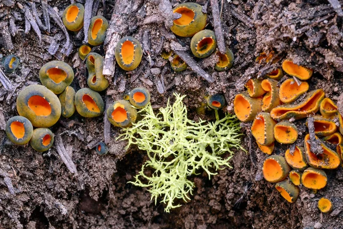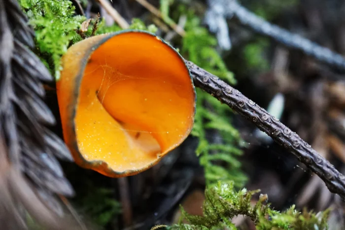 География этого вида охватывает северные широты: хвойные массивы Европы, Азии и Северной Америки. Калосцифа предпочитает уют хвойного опада — её часто находят среди еловых веточек и прелых шишек там, где ещё белеют пятна снега. Миниатюрное плодовое тело редко превышает пару сантиметров и напоминает чашу, наполненную оранжевым сиянием. Однако со временем магия меняется: края гриба синеют или приобретают малахитовый оттенок, будто он медленно меняет свой праздничный наряд на более строгий.