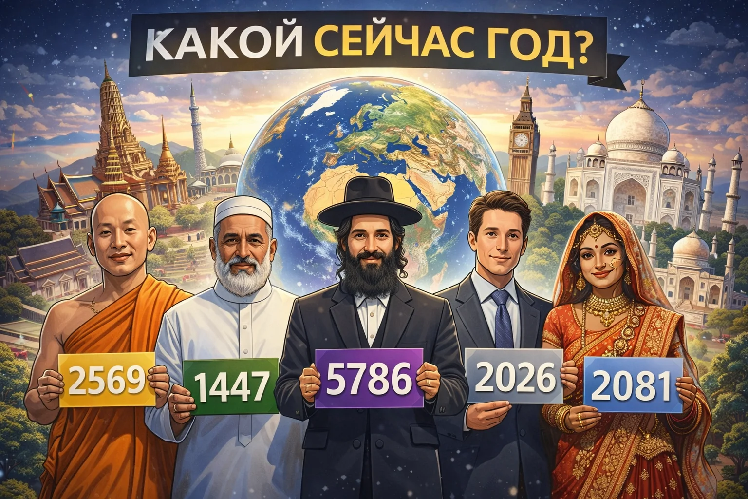 Таким образом, один и тот же момент времени на планете может выглядеть совершенно по-разному на бумаге. Где-то сейчас 2026-й, где-то 1447-й, а где-то — пятый тысячелетний год.