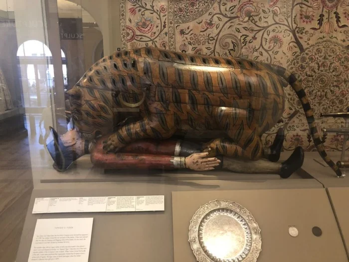 Победители бросились грабить казну, а спустя несколько недель среди ценных сокровищ, хранящихся в дворцовой музыкальной комнате, обнаружили необычный артефакт — крупный деревянный автомат, изображавший тигра, разрывающего человека в европейском костюме.