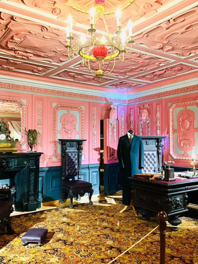 Кабинет главы семьи — строгий, тёмный, с тяжёлой мебелью и кожей — называли «Львиной комнатой» из-за обилия львиных голов в декоре. Здесь особенно чувствуется характер хозяина: твёрдость, расчёт и деловая хватка.