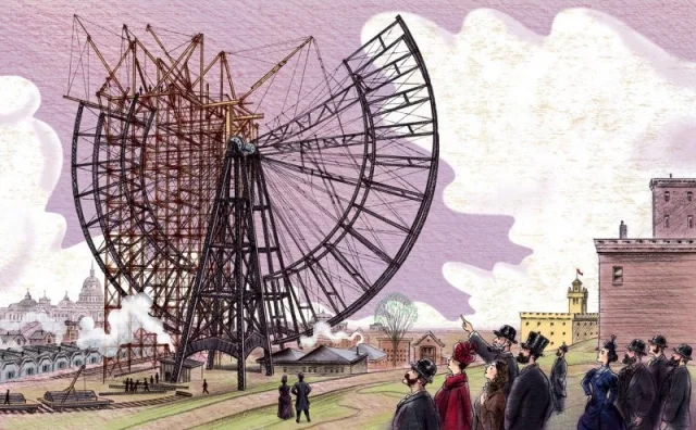 Инженер-мостостроитель Джордж Вашингтон Гейл Феррис-младший задумал превзойти Эйфелеву башню. К Всемирной выставке 1893 года в Чикаго он построил стальное колесо высотой 80 метров с 36 кабинками, каждая из которых могла вместить до 60 человек.