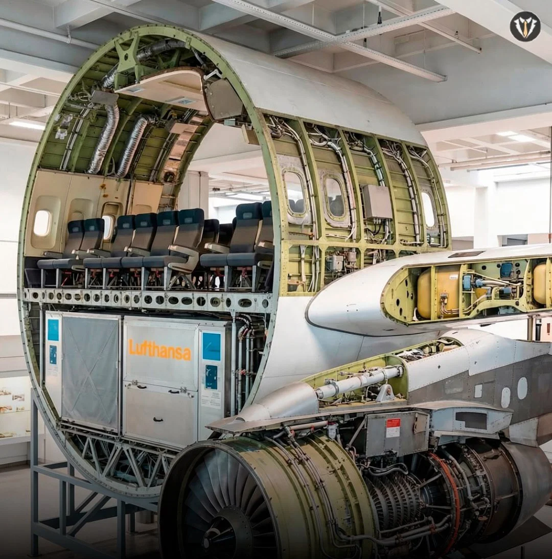 Кроме того, внутри фюзеляжа скрываются километры проводки, системы кондиционирования, топливные магистрали и элементы силового каркаса. Самолёт — это по сути летающий инженерный комплекс.