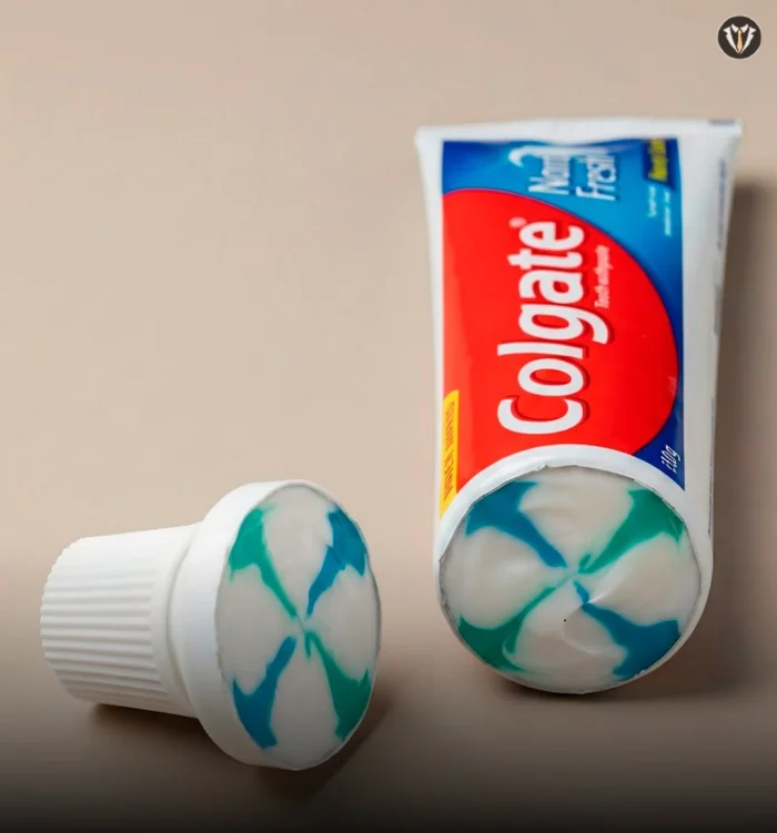 Кажется, что внутри просто паста. Но если разрезать тюбик, можно увидеть, как она уложена слоями. Разноцветные полосы не смешиваются благодаря особенностям насадки и конструкции горлышка.
