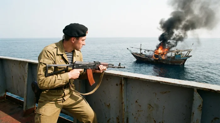 Каждое советское судно — от ржавого траулера до нефтяного танкера — несло простое послание: тронь — и умрёшь. Пираты попробовали. Передумали.