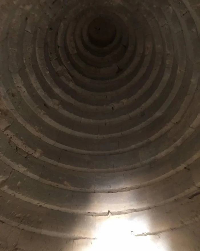 Главная архитектурная особенность — потолок. Начиная примерно с пятого ряда кладки стены постепенно переходят в уступчатый купол. Он состоит из 12 концентрических каменных колец, которые постепенно уменьшаются и сходятся наверху.