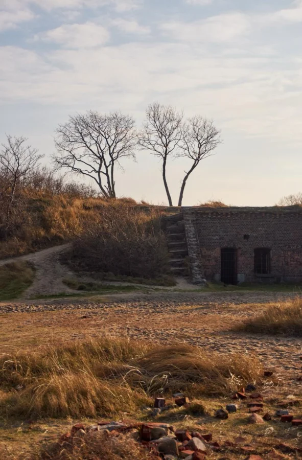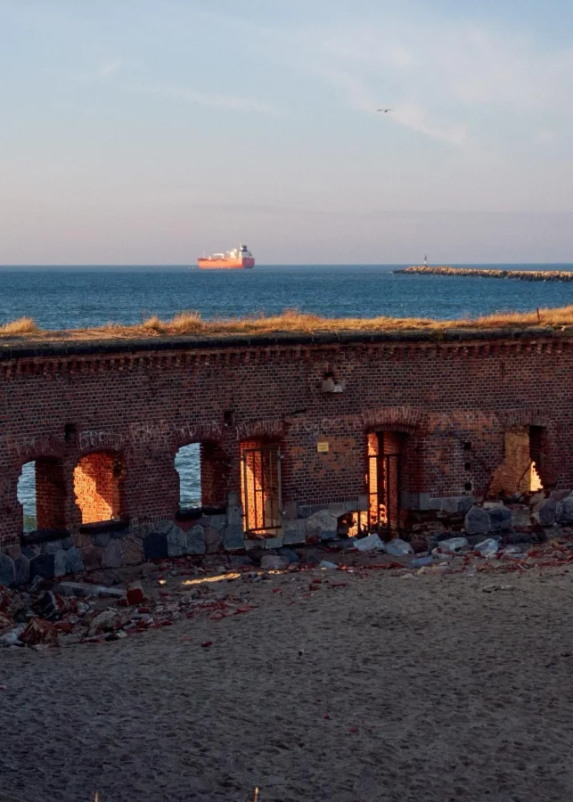 На самом краю Балтийской косы, среди песчаных дюн и ветров Балтийского моря, можно увидеть руины форта «Западный». Это одно из старых оборонительных сооружений, которое когда-то защищало вход в гавань Пиллау — важный военный и морской порт Восточной Пруссии.