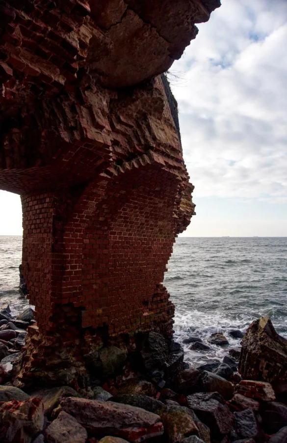Благодаря этому место выглядит одновременно сурово и красиво. Здесь особенно остро ощущается характер Балтики — холодный ветер, шум моря и ощущение времени, которое постепенно стирает следы прошлого.